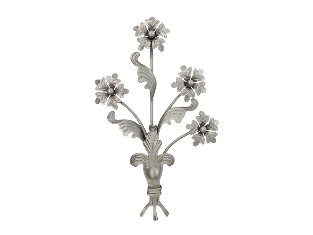 Kytice 500x270mm, d=6mm je kvalitní kovaný polotovar z masivní oceli. Hodí se pro různé kovářské projekty. Díky robustnímu provedení má dlouhou životnost a je připraven k dalším povrchovým úpravám, například nátěru proti korozi. Snadno se kombinuje s dalšími kovanými prvky a umožňuje vytvořit elegantní a odolný design. Upozornění: Některé, zejména litinové, prvky mohou mít povrchovou korozi. Pokud nepočítáte s pískováním nebo žárovým zinkováním hotového výrobku, zašleme Vám na požádání reálné foto vybraných produktů.Doplňkové parametry