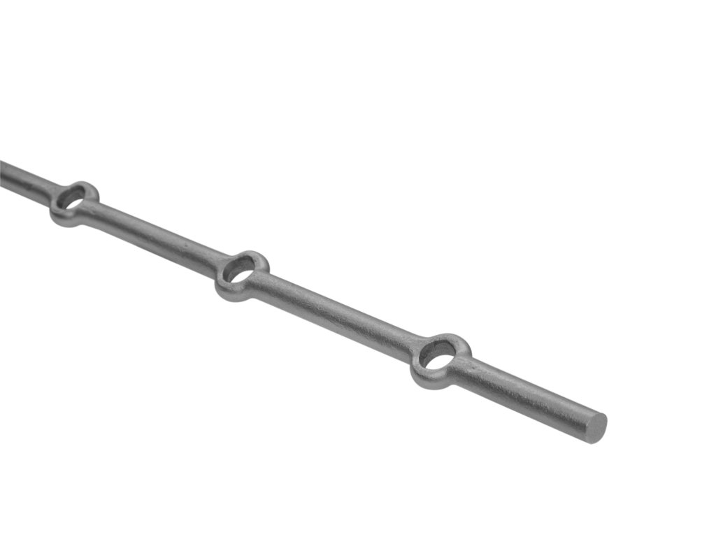 Tyč kruhová s otvory pr. 18mm, 2000mm, rozteč 160mm, 12 děr v tyči je kvalitní kovaný polotovar z masivní oceli. Hodí se pro různé kovářské projekty. Díky robustnímu provedení má dlouhou životnost a je připraven k dalším povrchovým úpravám, například nátěru proti korozi. Snadno se kombinuje s dalšími kovanými prvky a umožňuje vytvořit elegantní a odolný design.Doplňkové parametry